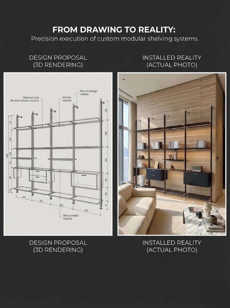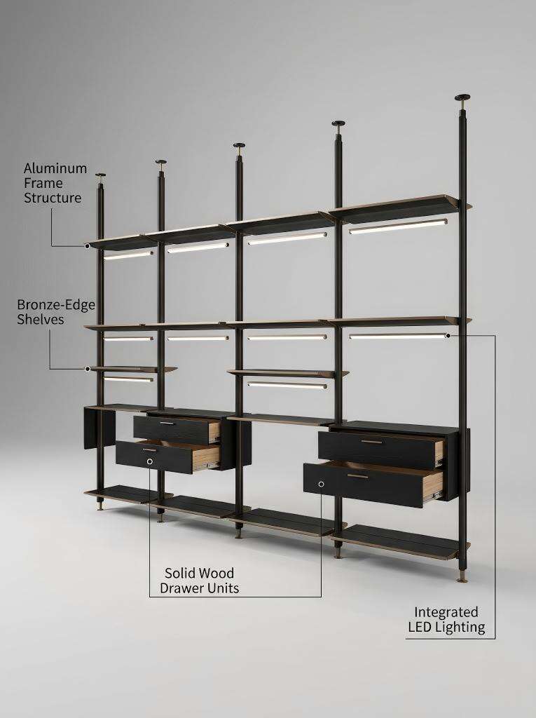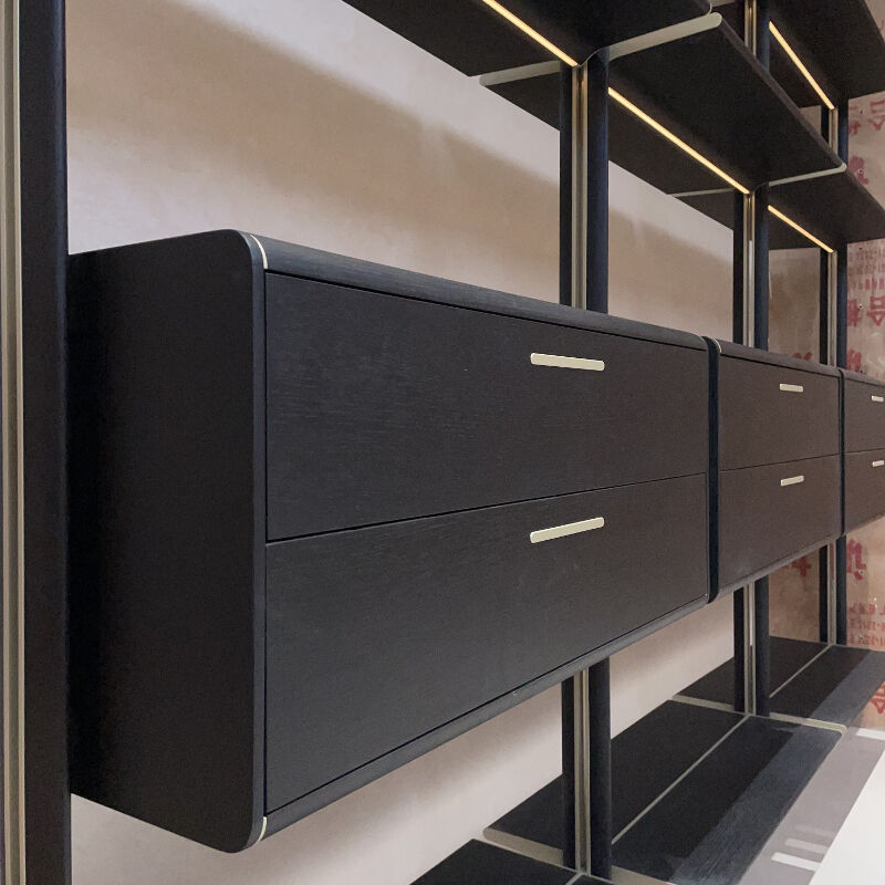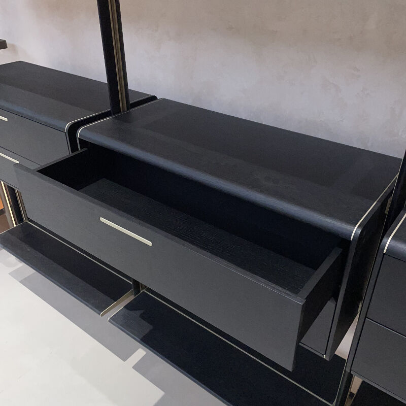 Il-kartell ikkoniku tal- ESM il-kolezzjoni tirrappreżenta l-fersa għall-ħasna u versatilità tad-disinn. Il-blatijiet vertikali, magħmulin b’mod personalizzat u ffissati minn flokk sa s-soffitta, jagħtaw pożizzjonament fleksibbli tal-elementi, f'kwalunkwe numru u f'kwalunkwe għoli. Il-sistema esklużiva tal-għaqda tagħti solidità strutturaj massima u tpermetti li jitlivellja perfettament kull komponent.
