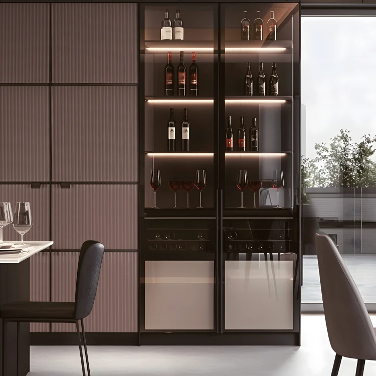 Ideal for wardrobes, wine cabinets, display units, and beyond, our aluminum frame doors adapt to any room—be it a bedroom, living room, or home bar. They combine practicality with high-end design, making them a standout choice for homeowners and interior designers alike.