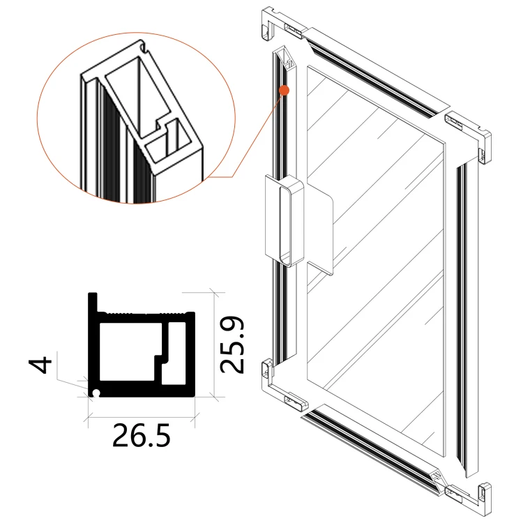 Our premium aluminum frame doors redefine elegance and functionality for your wardrobes, wine cabinets, and more. Crafted with high-quality aluminum profiles (see the precise structural design in our diagrams), these doors offer exceptional durability and a sleek, modern aesthetic that seamlessly blends into any interior style—from minimalist to luxury.