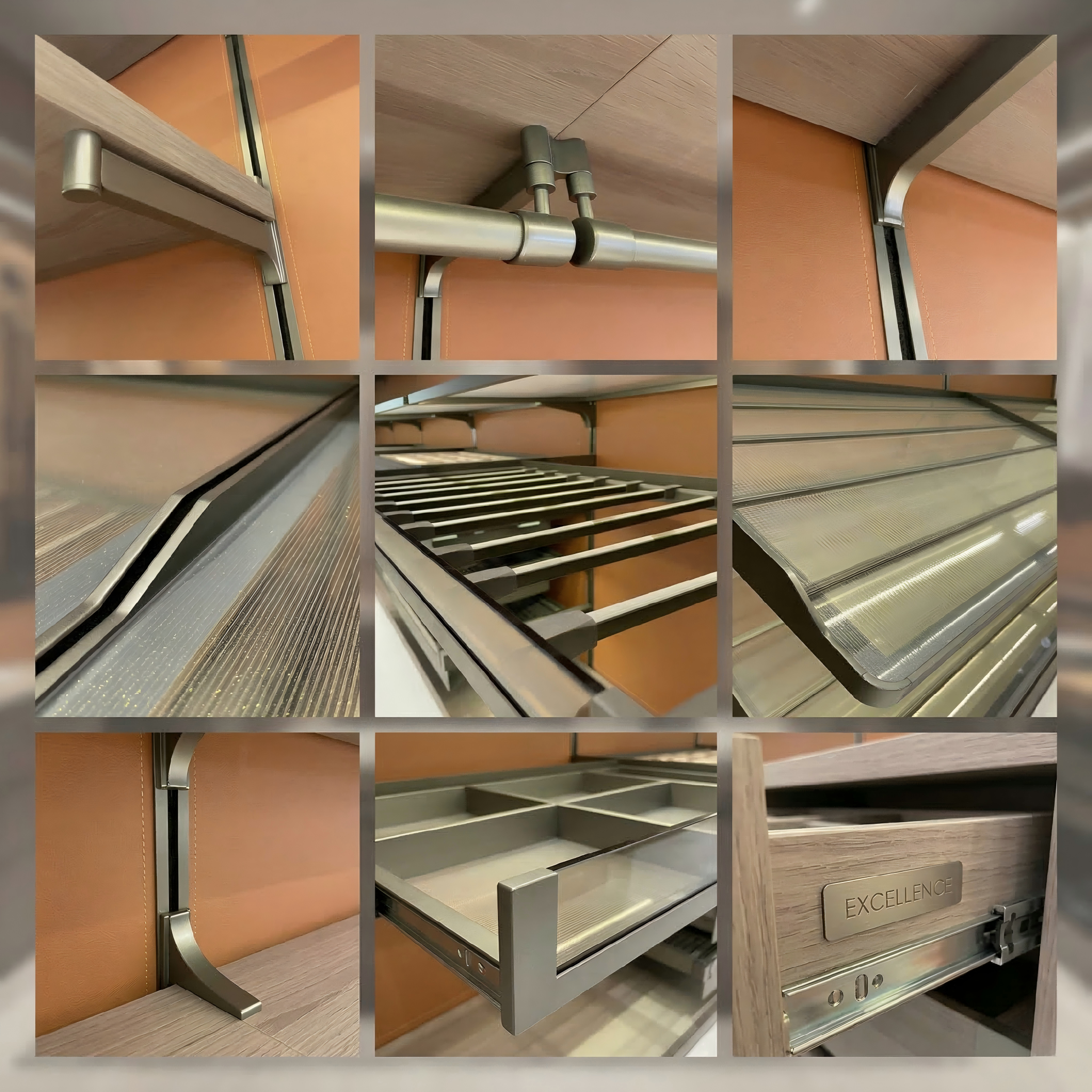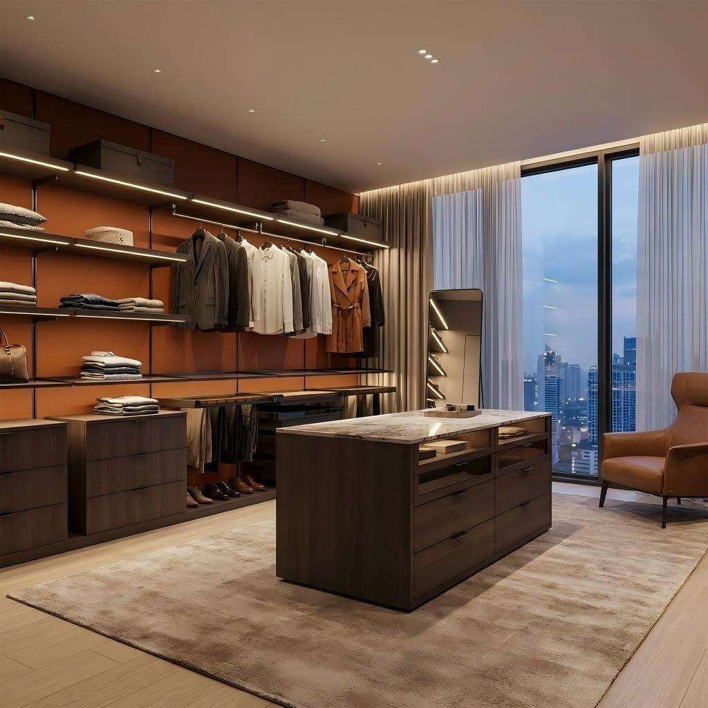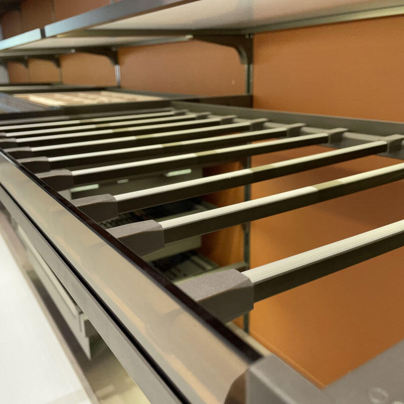 Ang luho na walk-in closet na ito ay may sopistikadong disenyo na may metal na balangkas, mga panel na bildo, at de-kalidad na aparat. Kasama nito ang ganap na napapasadyang modular na istruktura, na nagbibigay-daan sa personalisadong pagkakaayos ng mga lugar para sa pagbitin, mga estante, mga drawer, at espesyal na imbakan (tulad ng sapatos at tray para sa mga accessories) batay sa hiling ng kliyente. Ang integrated lighting ay nagpapahusay sa pagpapakita ng mga damit at accessories, samantalang ang mga bahagi ng bildo ay nagdaragdag ng manipis at modernong dating. Ang mapagtimbang na palette ng kulay at multi-functional na layout nito ang gumagawa ng standout na tampok sa mga nangungunang kwarto, na perpektong nag-uugnay ng praktikal na organisasyon at mataas na aesthetic appeal.