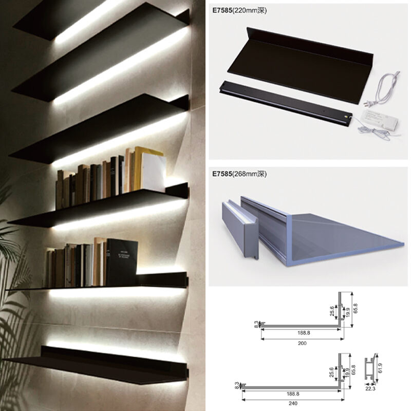 Crafted from premium aluminum, this wall-mounted shelving integrates LED lighting with multiple options: 3000K Warm Light, 3500K Neutral Light, 4000K Natural Light, and 6000K White Light. It offers customizable aluminum panel colors and two depth variants: 220mm and 265mm, enabling personalized configurations to match diverse spatial and aesthetic demands. Perfect for showcasing decor, bar ware, books, or artworks, its sleek silhouette injects a modern and sophisticated vibe into living rooms, home bars, studies, or commercial venues. The modular design allows flexible arrangements, combining functionality with stylish illumination seamlessly.